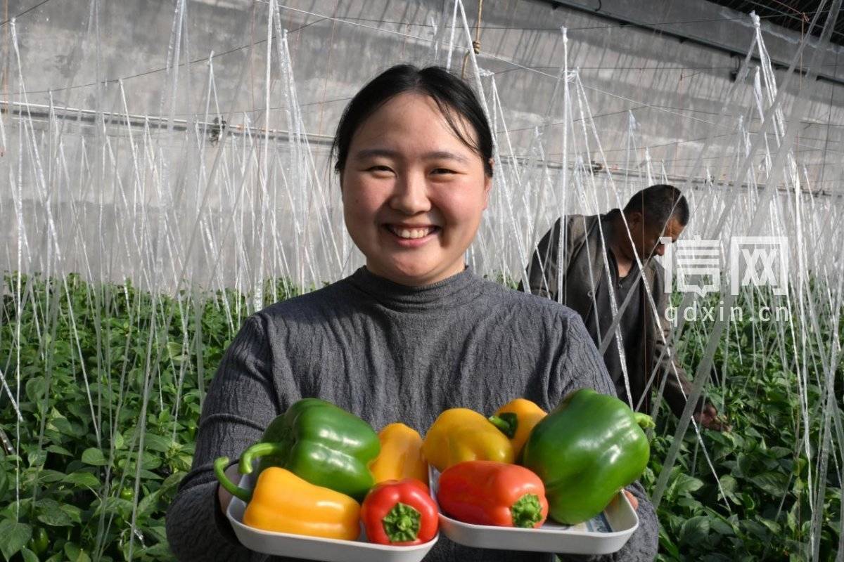 村民展示刚采摘的彩椒广东配资炒股。(来源:即墨区委宣传部)